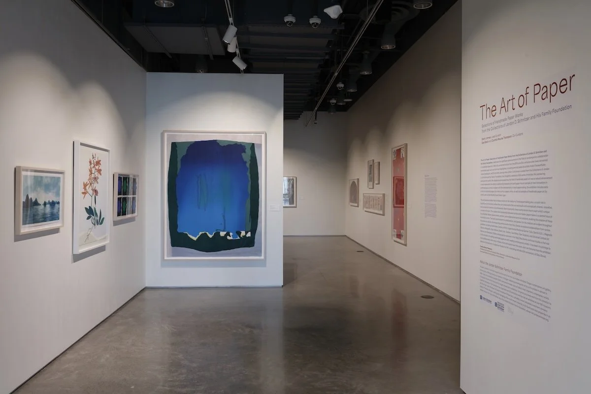 The Art of Paper: Selections of Handmade Paper Works from the Collections of Jordan D. Schnitzer and His Family Foundation installation at the Bernard A. Zuckerman Museum of Art, Kennesaw, GA. 2026. Photo by Mike Jensen.