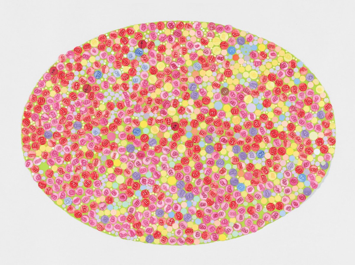 Howardena Pindell, Untitled #113, 2023. Handmade cotton and abaca paper with embedded intaglio printed paper dots.