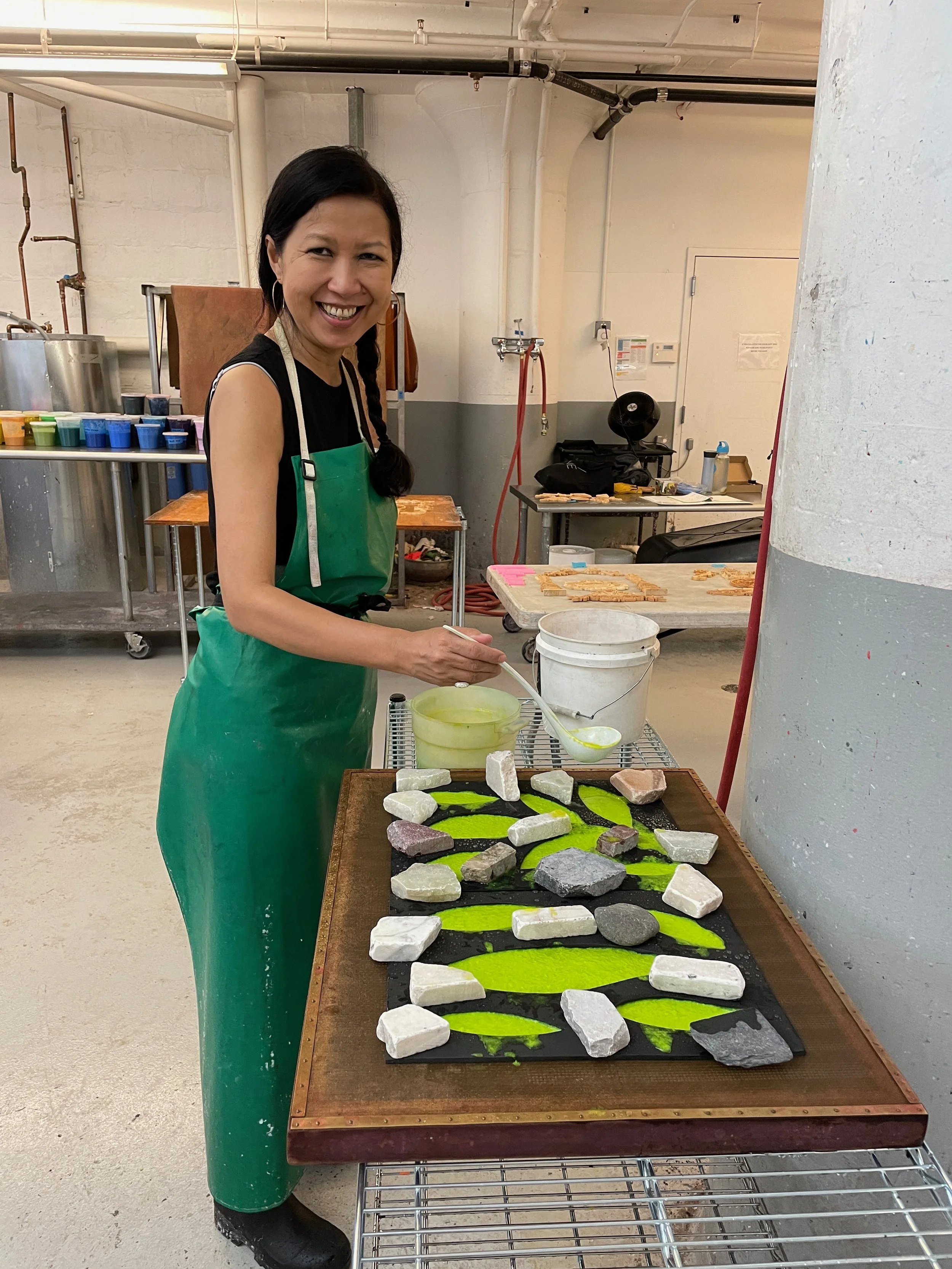 Cecile Chong was born in Ecuador to Chinese parents and grew up in Quito and Macau. Her public art installations include Art in Buildings/125 Maiden Lane (2024), EL DORADO - The New Forty Niners, installed in the five boroughs of New York City (2017-2022), and Socrates Sculpture Park. Fellowships and residencies include Art Omi, Marble House Project, Surf Point Foundation, Dieu Donné Workspace, BAC - Brooklyn Arts Fund, Asian Women Giving Circle, NYSCA, LMCC Creative Engagement, Urban Field Station, The Hispanic Society’s Vilcek Artist Research Fellowship, Block Gallery/Bronx Museum, BRIC Media Arts, Joan Mitchell Center, Wave Hill Winter Workspace, Jerome Foundation Travel and Study Grant, and the Joan Mitchell Foundation MFA Grant. Solo exhibitions include Kates-Ferri Projects, Sugar Hill Children’s Museum, Selenas Mountain, ICFAC at Pinta Miami, Smack Mellon, Kenise Barnes Fine Art, FiveMyles, BRIC House, and Emerson Gallery Berlin. Chong’s work is in the collections of El Museo del Barrio, Museum of Chinese in America, The Long Island Museum, The Rockefeller Foundation, The Center for Book Arts, Bryn Mawr Hospital, Citibank Art Advisory, and private collections internationally. She received an MFA from Parsons, an MA in education from Hunter College, and a BA in Studio Art from Queens College.