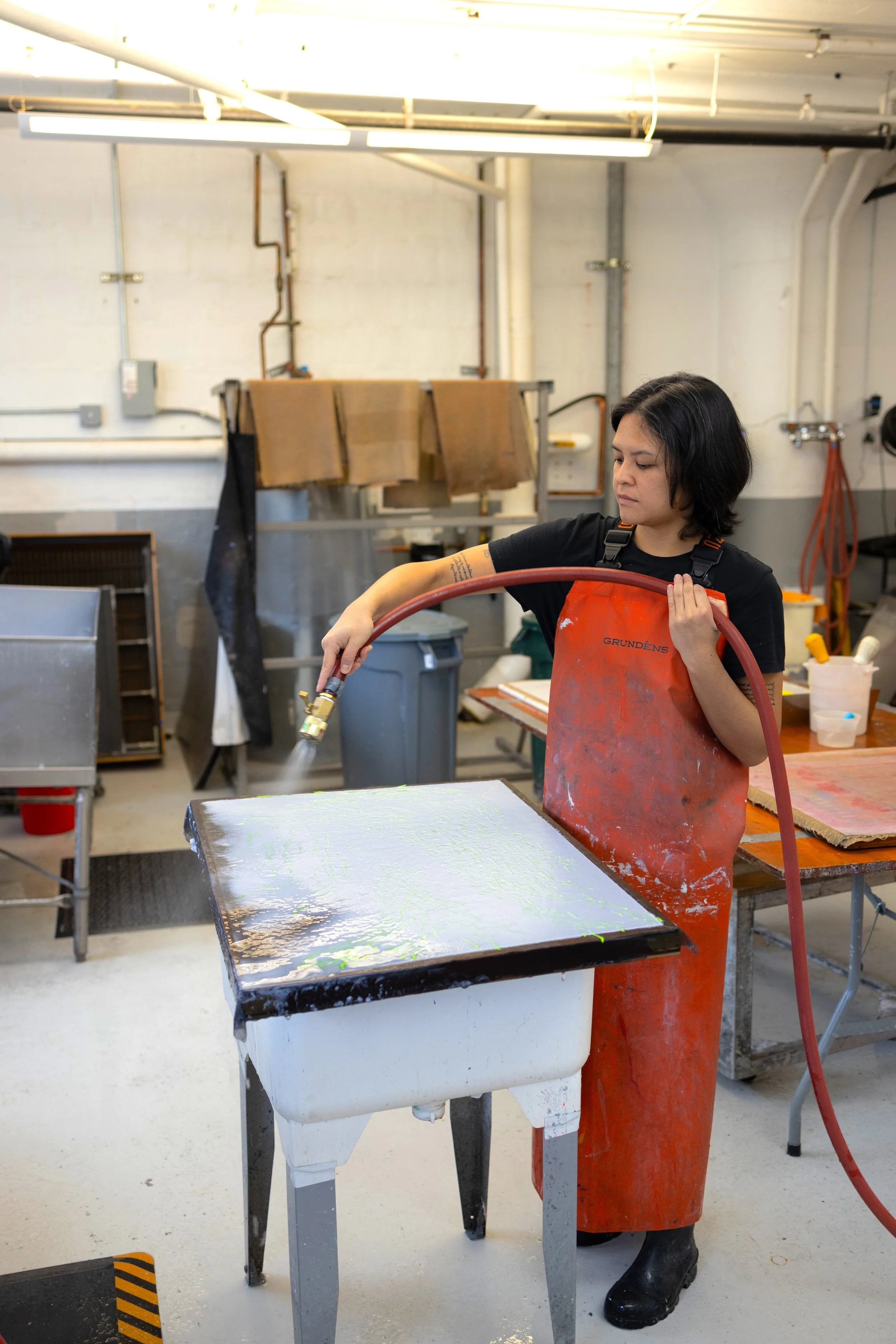 The Marabeth Cohen-Tyler Print/Paper Fellowship is awarded annually to a BIPOC (Black, Indigenous, person of color) or underrepresented printmaking postgraduate or professional printer. Through research and experimentation, the fellow will develop custom papers for different printing methods and explore creative techniques in the papermaking process to enhance imagery.